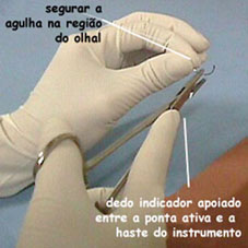 6.1 Apreender a agulha traumática nº 12 utilizando o porta-agulhas, conforme a figura. |